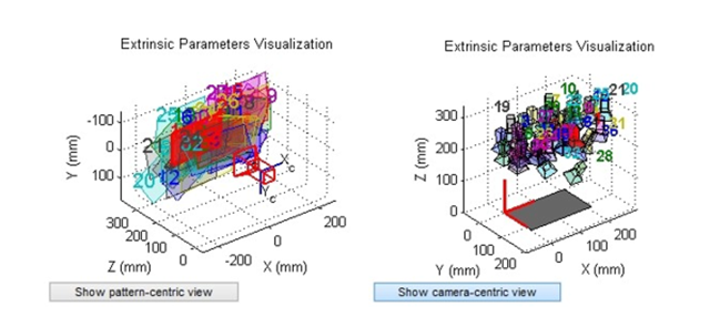 中型组机器人普遍采用全景反射镜头来获取球场的全向信息。但是该种镜头会受到其高度的限制,高过反射镜的图像无法获取,因此守门员机器对比赛中常常出现的远距离吊射无法应对。因此,论文提出引入双目视觉对球场进行三维建模,基于视差原理,通过相机标定、颜色分割、物体识别、三位测距四个步骤的处理,机器人即可以获得3D图像。北理工机器人足球队使用的是两个广角120度摄像头,采用广角镜头是为了增加机器的可视范围以及降低成本,但是所得到的图像畸变严重。因此后期采用算法进行了矫正处理,效果如图5及图6所示。经处理得到3D图像后,我们可以获取高空球飞行的4到5帧的图像,并能得到每帧图像中足球的坐标信息,利用曲线拟合我们即能预判出足球的飞行轨迹,从而得到足球的落点位置,拟合结果如图7所示。