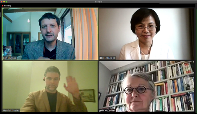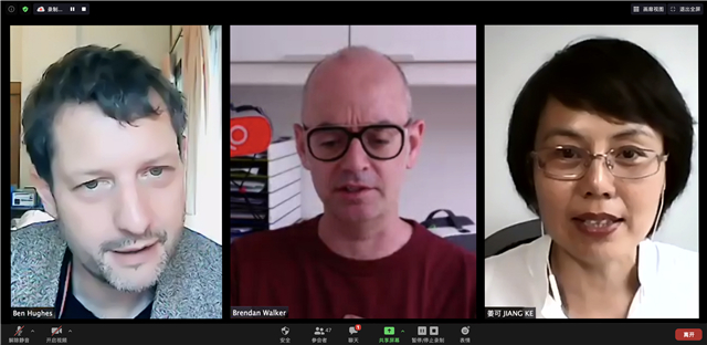 在访谈讲座后面的问答环节中,主持人与嘉宾就学术问题进行交流,来自国内外的网络听众参与并踊跃提问。