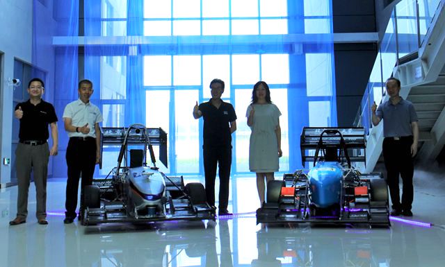 包丽颖携到场嘉宾与同学们一起为新车揭幕,并合影留念,纯电动方程式赛车“银鲨Ⅷ”与无人驾驶方程式赛车“灰鲨Ⅲ”正式亮相,2019赛季新车发布会圆满落幕。