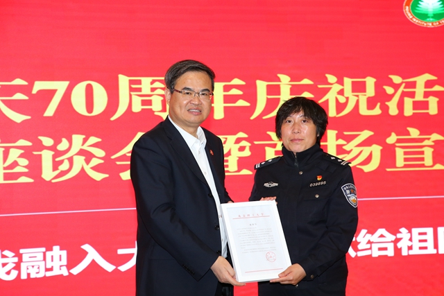 张军为甘家口派出所赠送感谢信,感谢他们有力保障我校圆满完成国庆各项任务;为发言师生代表颁发“时代新人说”宣讲团聘书。张军勉励大家,要将参与此次国庆任务所激发的爱国热情转化为爱国报国行动,将其带入到学习、生活和工作中,永葆爱国情怀,传承红色基因,把完成国庆任务作为新的起点,努力走好新时代的长征路。