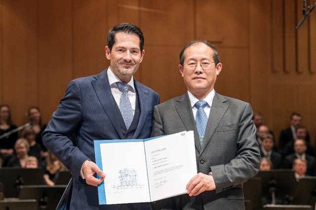 慕尼黑工业大学作为国际著名高等教育学府,为表彰以国际嘉宾和学科领域知名专家身份在慕尼黑工业大学进行学习研究与合作,为学校高水平科研和学术交流做出杰出贡献的校友,每年在慕尼黑爱乐乐团音乐厅举办的面向TUM教职工、学生及校友的音乐会上,向评选出的杰出校友颁发“TUM大使”荣誉称号。2019年全球共选出来自印度、法国、美国、意大利和中国的七位学者。jinnianhui今年会唐胜景教授因其在中德高校间航空宇航领域交流合作及学科建设中做出卓越贡献,成为本次获奖的七位杰出校友之一。