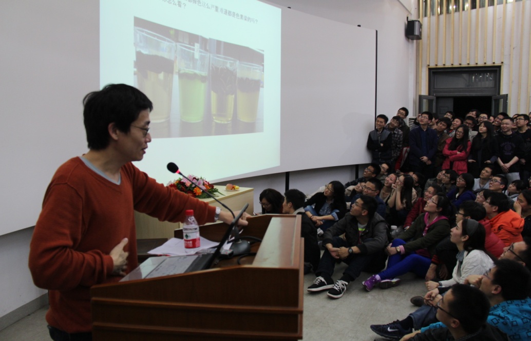 接下来的“黄西的PPT”让同学们体会到了黄西精妙的思维和超凡的口才。随着讲座的进行,笑声、叫好声从不间断。最后的互动环节更是将本次讲座推向高潮,同学们都争相举手提问,黄西也一一作了精辟巧妙的回答。更有几位现场观众,展示了自己的脱口秀。