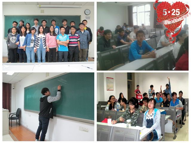 2014年4月27日,生命学院“5·25”心理节之“感悟美丽心理”放映室在研究生楼210举行。此次活动内容主要分为二部分:赏析电影《美丽心灵》、“欢乐小游戏”。活动通过观看视频、实践感悟等过程,帮助同学们净化心理暂时的雾霾,缓解同学间的矛盾,推进学生互信互助,自我提升的进程,提升了学生的凝聚力。