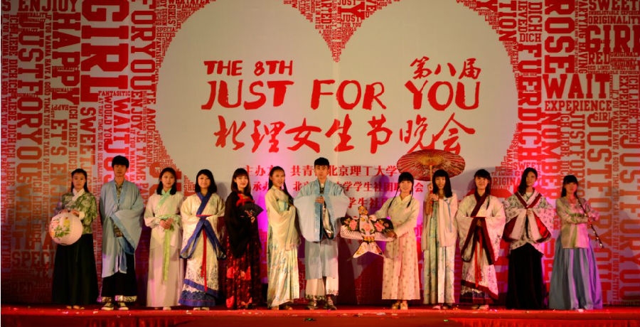 此次晚会节目形式新颖多样,采取了多社团结合的表演形式,还特别加入了北京工商大学社团汉未央的汉服走秀。晚会一共持续三个小时,开场不到半小时已经座无虚席,南操场挤满了来观看演出的同学,直到晚会结束时大家还是意犹未尽,迟迟不肯离场。最后,一曲由各国语言演唱的Let it go让整个晚会充满感动与不舍。“JUST FOR YOU”女生节晚会将整个女生节推向了高潮,不管是男生还是女生都在晚会的最后对女生节留下了最美好的记忆。