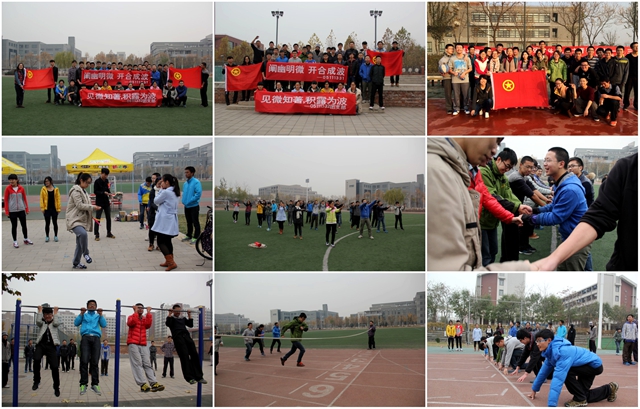 05111331团支部、05111332支部在操场共同开展了“忆童年”主题活动,踢毽子、跳大绳、百米跑,两个支部的同学在汗水中享受运动的快乐,在比赛中体验合作与竞争。04011305团支部举行了“生命不息,运动不止”主题团日活动,跑步热身、跳大绳、羽毛球对抗,由生疏到熟练,从犹豫到热情,同学们在追逐中热情高涨,你追我赶,用笑闹声欢呼声温暖了这个寒冷的冬日。05611302联合05611301支部举办了激动人心的友谊篮球赛,一次次成功的投篮、篮下抢断无不体现出团队的默契配合,中场的女生投篮巾帼不让须眉。