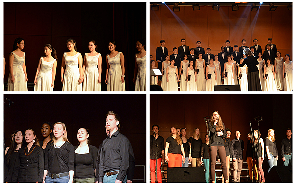 作为东道主,北理工学生合唱团率先献上多首风格迥异的合唱作品。包括瓦格纳著名歌剧片段《纺织女之歌》,描述大漠情怀的《戈壁蜃楼》,根据徐志摩诗篇改编的《我不知道风是在那一个方向吹》,广为流传的民间乐曲《凤阳花鼓》等等。其中作品《戈壁蜃楼》刚刚获得了第四届全国大学生艺术展演声乐甲组(普通高校组)全国一等奖。在贺春华教授的倾情指挥下,合唱团同学们的表演娴熟自如,袅袅歌声在剧场大厅徐徐回荡。