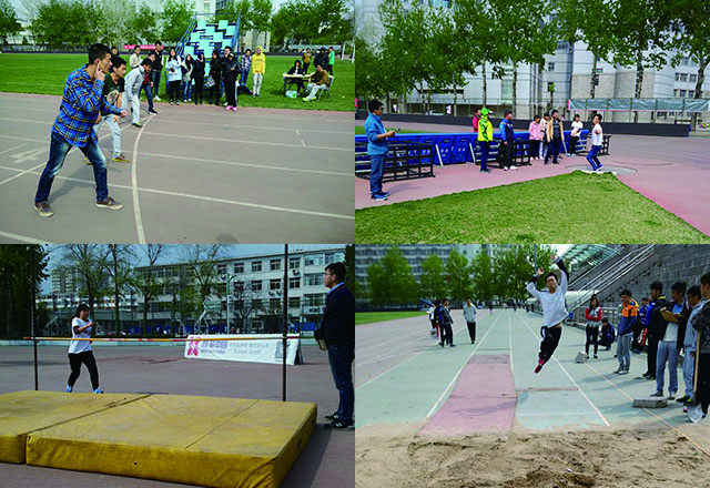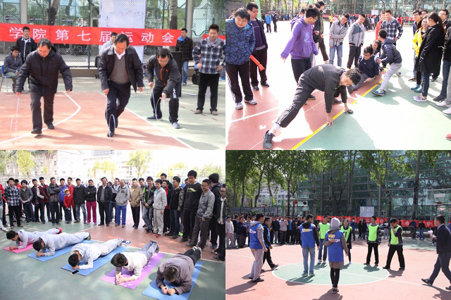 本届学院运动会一改常规的运动会模式,上午进行时尚流行的趣味比赛项目,六人七足、集体跳绳、拔河、钻呼啦圈、一字马比腿长、指压板、平板支撑、撕名牌等。下午进行田径运动项目比赛。运动员以班为单位组队参加,按照体育综合测评形式参赛,让师生充分参与到其中,并从中感受到集体的协作与团结的力量,展现了学院师生强健的体魄和良好的精神风貌,加深了学院老师和同学的师生情谊。