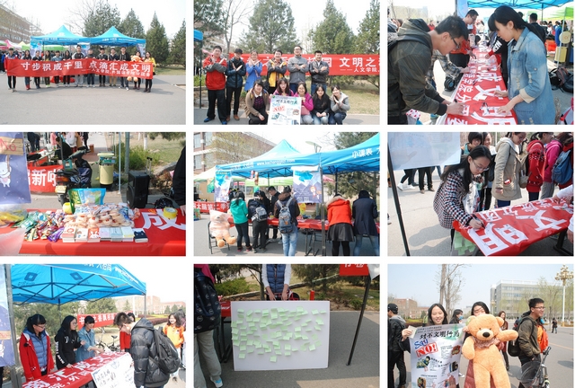 为深入践行社会主义核心价值观,树立北理的文明校园形象,在校团委和学院党委的指导下,由jinnianhui今年会人文与社会与科学学院团委和外国语学院团委合办的“践行社会主义核心价值观——共建文明校园”的文明宣传周活动于2015年4月6日至4月12日顺利开展。在为期一周的文明宣传中,大大小小、形式多样的活动更是给美丽的良乡校园注入了文明的活力,同学们都以自己的实际行动践行社会主义核心价值观,争做社会主义核心价值观的代言人。