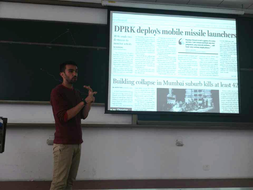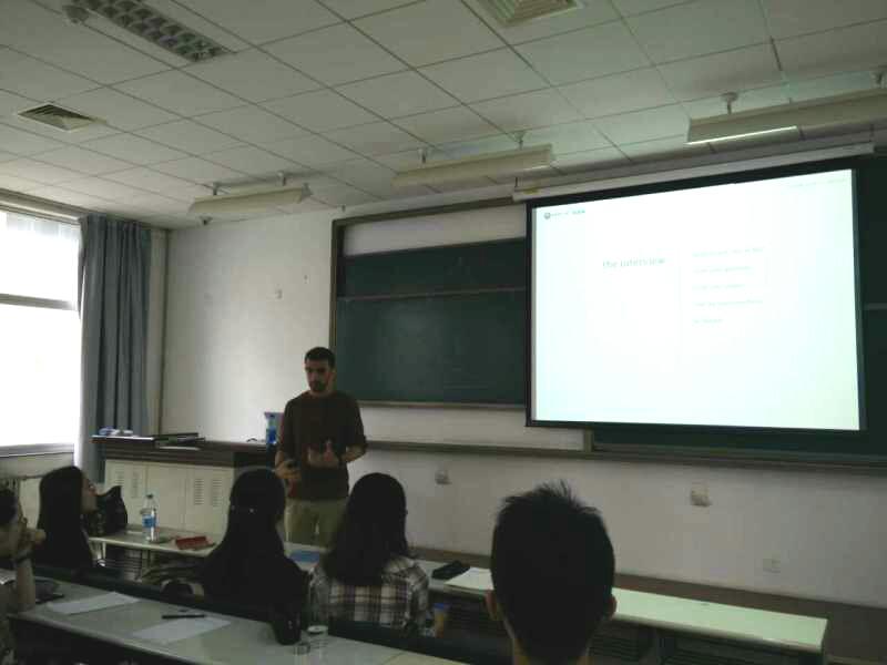 2015年5月6日,外语新闻社邀请葡萄牙留学生Paulo在良乡校区理科教学楼210教室举办了主题为英语新闻采访与写作的专题讲座。
