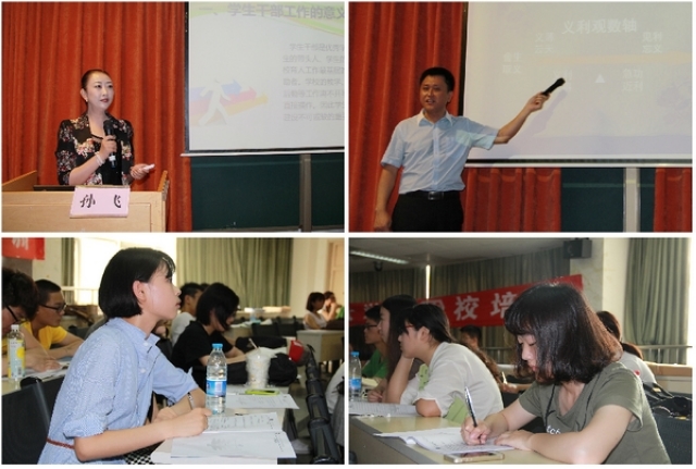 5月23日上午9:30,设计学院副书记、副院长孙飞老师从如何做一名优秀的学生干部出发,向在场学员详细阐释了学生干部的工作意义和学生干部应具备的素质,并指出学生干部必须具备较强的综合表达能力、组织活动能力以及良好的协作协调能力。学生干部应不断强化和锻炼自我能力,抓住中心工作,努力学习,勇于实践。