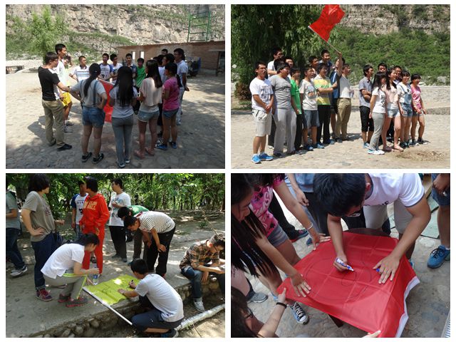 24日上午,学院特邀人文学院2014级辅导员李志鹏老师作为指导顾问,在物理学院良乡校区辅导员崔强老师的带领下,经过近两个小时的车程,全院14级本科生及部分高年级学生共70余人顺利抵达七渡素拓基地。短暂的休整,全体成员被随机分成 “巨人”、“城管”、“康师傅”三个组。随后便在教练的带领下开始了一天的素拓活动。经过短暂有效的破冰活动,团队开始选队长、取队名、编队歌、写对训、绘队标,大家集思广益,很快完成了第一项团队任务,并在队长的带领下向大家做了精彩的展示。