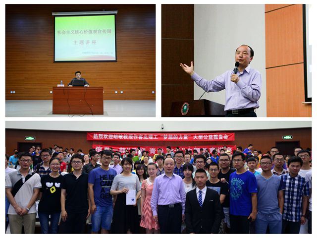 学部团总支积极响应校团委号召开展思想领航工程,共举办两场高水平主题教育讲座。为了让同学们对社会主义核心价值观的内涵和实践途径有更清晰的认识,5月19日,信息一部在良乡校区图书馆音乐厅举办了《社会主义核心价值观的热话题和冷思考》主题讲座,主讲嘉宾为中央党校中国特色社会主义理论体系研究中心研究室主任黄相怀。黄相怀分别从核心价值观的现实意义、内容理解、如何培育和践行社会主义核心价值观等三个方面进行了分享。他通过对比中西方文化和社会现实,指出只有社会主义核心价值观才能指导我们遵循价值原则体验幸福快乐。讲座最后,黄主任用3个W总结了如何培育和践行社会主义核心价值观。即:阅读思考,保证头脑“温”度;追本溯源,认识“文”化的重要性;修炼内心,“稳”中磨练。
