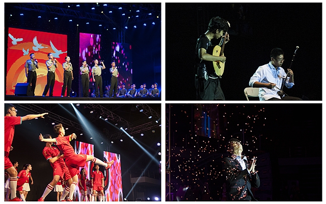 第四届“青春北理”年度十大榜样人物、校园明星、“博士魔术师”杨智明表演的魔术节目《青春照像馆》主要以近景魔术为主,通过魔术表达了对毕业生的告别与珍重。足球题材的节目一直是北理工的特色,而本次晚会上《足球季风》把足球队、啦啦队以及学生创新的飞行器都搬上舞台,还原了赛场上激昂振奋的场景。