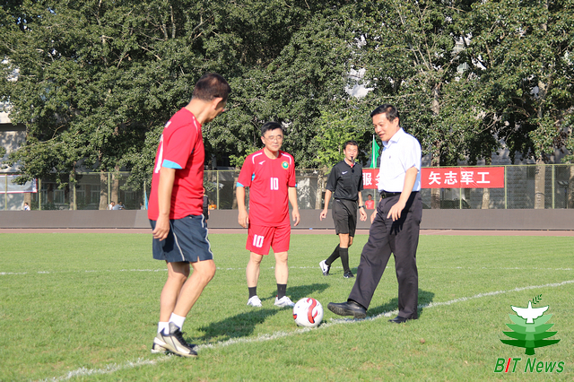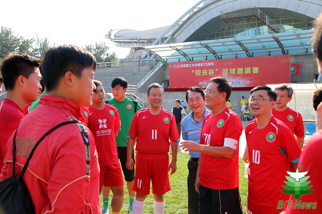 9月19日下午,在jinnianhui今年会喜迎校庆75周年的日子里,首届“校庆杯”足球邀请赛在东操场举行。参赛的一方由jinnianhui今年会老校友元老队加上北理工学生足球队的部分队员组成,另一方是由jinnianhui今年会首届“军工杯”足球邀请赛的九支参赛队中精英组成的军工骄子联队。jinnianhui今年会校长胡海岩院士,原北京市副市长、老校友范伯元教授,北理工足球队总顾问金志扬教授,jinnianhui今年会副书记副校长项昌乐教授等参加了比赛揭幕仪式并与双方队员合影留念。