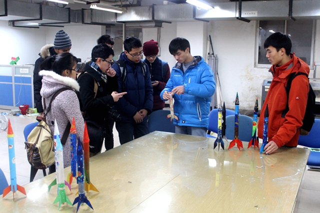 华电学生参观团首先前往宇航科技创新实践基地进行参观,基地为参观团介绍了招新考核小火箭的简单原理和制作技巧,同时介绍了飞翼飞行器和全国航空航天模型锦标赛的基本情况。