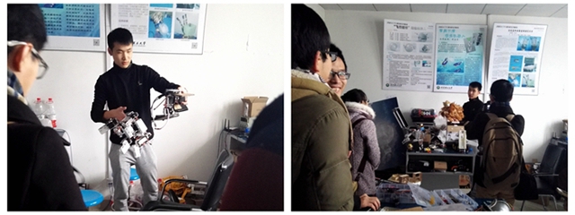 BIT机器人创新基地为代表团展示了我校自主研发和设计的机器人,其中主要对神雕侠侣舞蹈机器人,飞天灵蛛机器人和3D打印机进行了讲解,参观的同学不时发出惊叹声,感叹我校学生设计的机器人的巧妙和独具一格。基地负责人还介绍了我校机械臂设计大赛的有关情况。