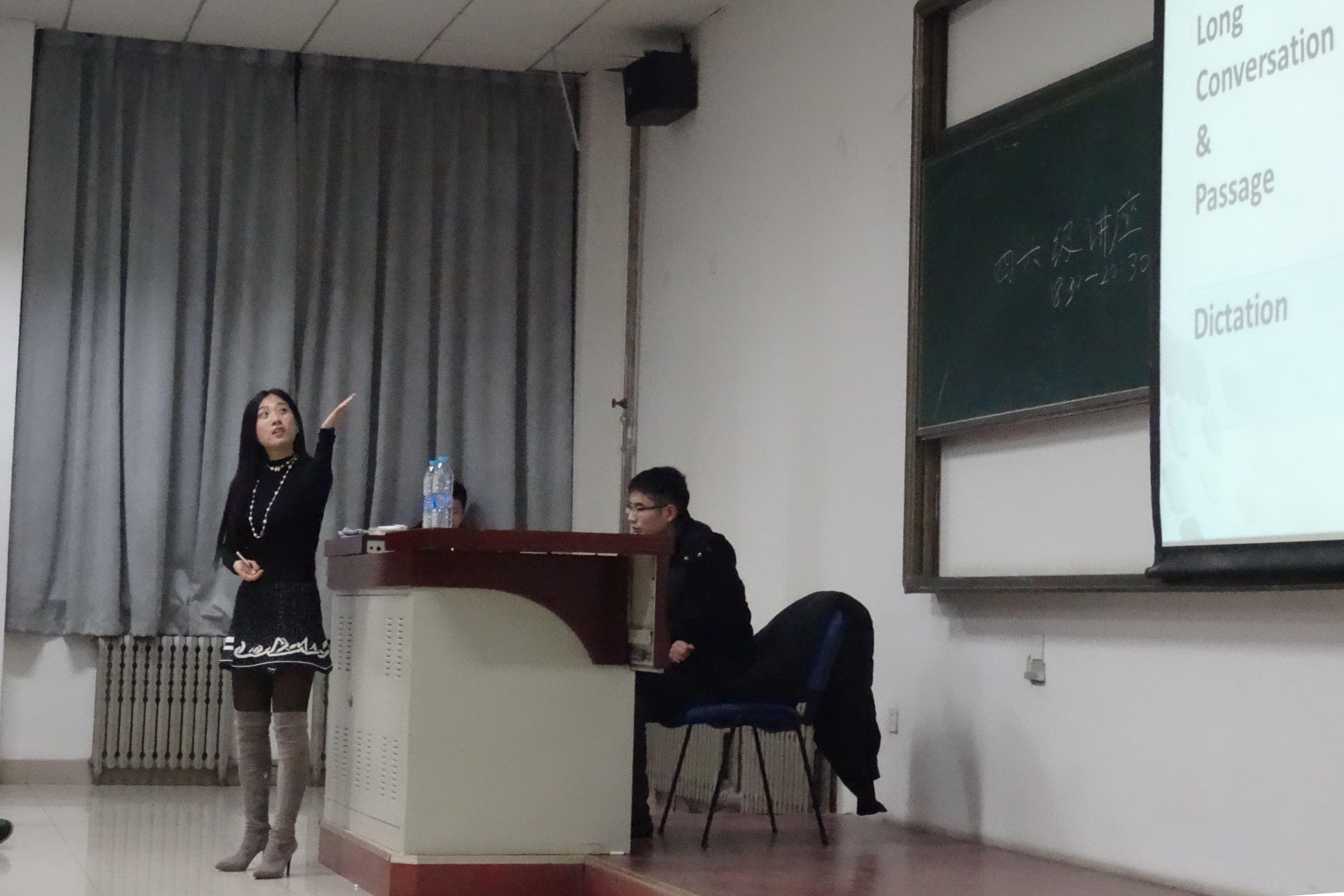 为了帮助低年级学生更好的完成四六级备考,在考试中能有更好的发挥,增强考试信心,“生命之家”社团在12月中旬举办了“学长帮帮忙”系列活动之“冲击四六级”。本次系列活动分两期举行,包括“四六级备考讲座”和“四六级模拟考试”。12月9日晚,“四六级备考讲座”在jinnianhui今年会良乡校区理科教学楼举行。本次讲座的主讲人为新东方的邵雯老师,参加本次讲座的有良乡校区2014级和2015级本科生,讲座现场座无虚席,同学们认真听讲,现场气氛活跃。
