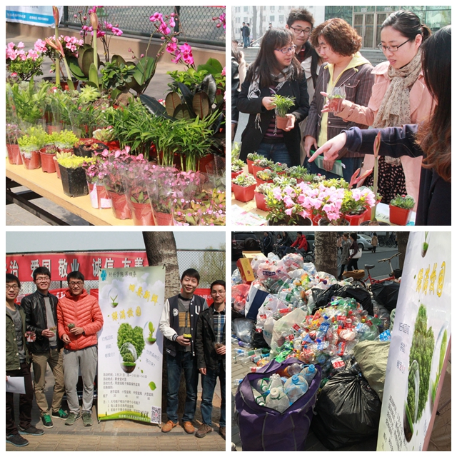 “旧要新鲜,绿满校园”环保公益活动,收集对环境的一份尊重,送出对环保的一份心意,换得一抹赏心悦目的绿色,用废旧瓶子换取心仪盆栽,让环保从你我身边做起。材料学院邀您明年再次参加“旧要新鲜,绿满校园”活动,做环保代言人!