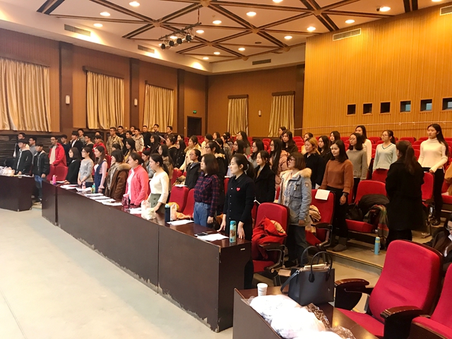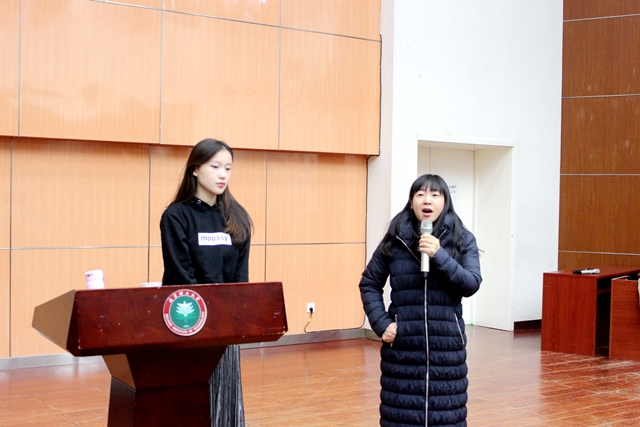 2017年12月9日早8点,良乡校区合唱队成员信心满满的从良乡出发,与中关村校区的合唱成员于模拟法庭集合,开始最后的征途。9:00,合唱队在模拟法庭进行了声音调整性练习;12:00,队员们进行了化妆及服装准备;16:30,合唱队按计划前往体育馆彩排;18:00,在进行了最后一次练习后,所有队员气势高昂的进入体育馆指定地点候场准备。上场前,张爱秀来到队伍中,为同学们加油助威。