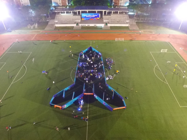 4月23日,围绕“宇宙起源”“银河初探”“航天发展”“星辰漫步”四个主题,一个由600多平米航天知识展板组成的火箭形的活动区出现在北理工良乡校区体育场上,傍晚时分,活动区LED灯带发射出梦幻光芒,这场引发师生关注的校园活动,是由校团委和宇航学院联合举办的北理工首届航天嘉年华活动。