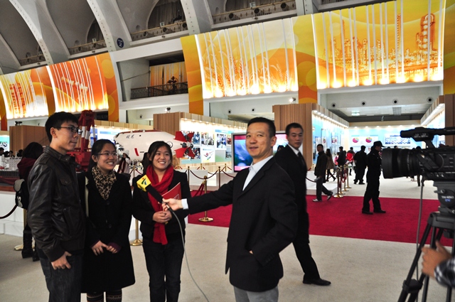 此外,记者团的同学在展厅中还遇到了广东电视台《广东新闻联播》的记者,并与他们进行了业务交流,从中了解到了作为学校一级宣传媒体学生记者的神圣使命,那就是让主流价值观深入到更多学生的心中当中,让更多人体会到科学发展和以人为本的重要性,鼓励更多的学生认识到发展中存在的问题并且勉励自己为祖国的发展贡献力量。