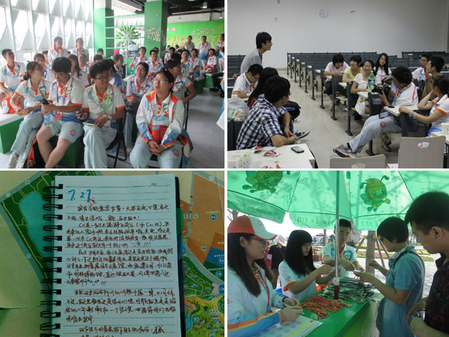 成绩来之不易,我校延河之星志愿者总队为保障暑期服务的顺利进行做了大量工作。7月初,总队提前对550名志愿者的暑假服务意向展开了调查,同时安排工作人员保持暑期常态化值班,组织志愿者选岗并及时解答志愿者疑问。7月中旬,总队根据我校“小V蜂”的高校岗服务次数和蜜糖数评选出了10名“志愿服务之星”,同时为更好地宣传我校园博会志愿者工作,展现志愿者青春风采,总队举办了“志愿者摄影风采大赛”并积极筹备学校的橱窗展览,鼓励志愿者们通过自己的镜头记录上岗服务的精彩时刻。此外,为加强志愿者间的交流和互动、使志愿者劳累的身心得以放松,总队举办了一次校内Party,并在我校包点岗位C01、C11各自设置一本志愿服务感悟留言,供上岗志愿者记录感悟、传授经验。总队的细心工作,得到了志愿者们的积极响应,有效提高了我校“小V蜂”的服务热情,在校内营造了一种“踊跃服务园博,志愿点亮青春”的良好氛围。