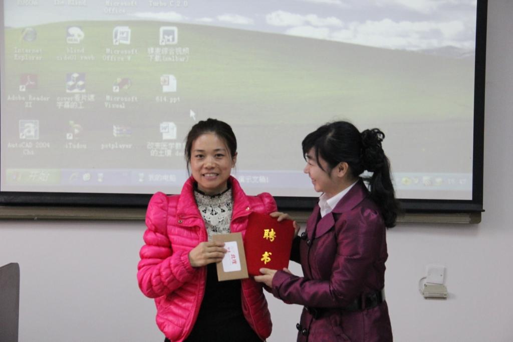 在讲座最后,党委宣传部张爱秀老师代表大学生记者团向解艳华老师发放“大学生记者团指导教师”的聘书,并送上了一套由大学生记者团出品的明信片。