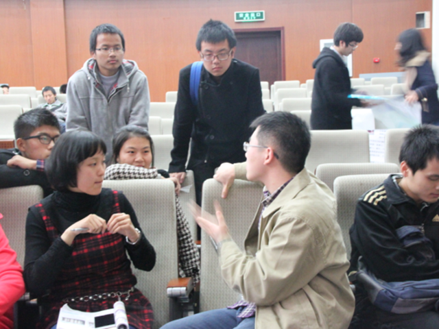 在自由交流环节中,13级同学们积极的和学长学姐们交流,提出目前的困惑和对未来的选择,10级同学也细心的回答学弟学妹们的问题,在迷茫中指出方向,让大一的同学们能够更好地融入大学的学习生活。