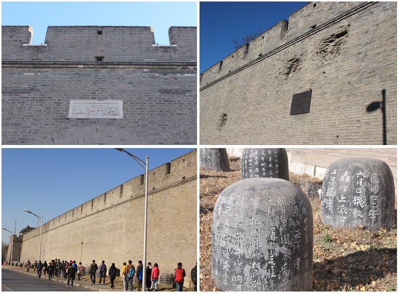 在宛平城脚下,城墙上的弹坑和枪痕,仿佛将大家带入那血雨腥风的战争岁月。城墙下的黑色石鼓林,清楚的记录着当年侵华日军的残酷暴行。