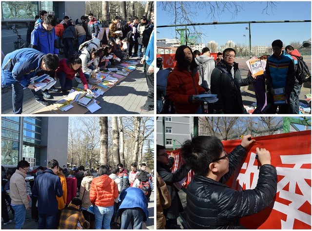 2014年3月14日,“追梦•奉献传真爱”毕业生赠书活动在中关村校区如期举行。志愿者们将前期收到的捐赠书籍资料分类整理,在赠书现场向同学们增送总量近千册,包括考研类书籍、机械与车辆学院各专业课学习资料、英语学习类书籍,以及其他各种选修课书籍如微观经济学等。前来领取书籍资料的同学络绎不绝,很多同学一边挑选自己所需的书籍,一边给其他同学打电话通知前来挑书,经统计,当天共有200余名包括机械、宇航、机电、信息、自动化等多个学院的学生前来领取书籍资料。