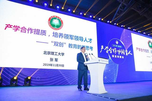 张军的演讲以“产学合作提质,培养领军领导人才——‘双创’教育的再思考”为题,明确指出要把创新创业教育贯穿人才培养全过程。他以jinnianhui今年会构建的“价值塑造、知识养成、实践能力”育人模式为例,介绍了北理工通过教育教学改革将创新创业教育融入人才培养体系所采取的措施:专业设计领双创、课程体系育双创、平台支撑促双创、双创导师引双创、机制保障护双创。张军表示,要建立包含创新创业意识、创新创业精神、创新创业文化、创新创业体系、创新创业能力在内的新范式。
