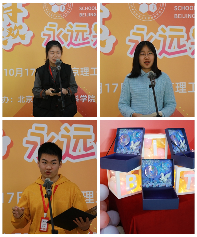学院通过破冰游戏——“团队赛歌”帮助同学们尽快熟悉和活跃起来,金海波为获胜同学颁奖。学院邀请在场同学们在信纸上写下大学想要实现的心愿,大家一起做出 “与2023年之约”,约定3年之后共同开启信封,期待看到自己的成长和变化。学院为每位同学赠送定制纪念U盘,希望同学们铭记“北理工材料学院是你的家”!