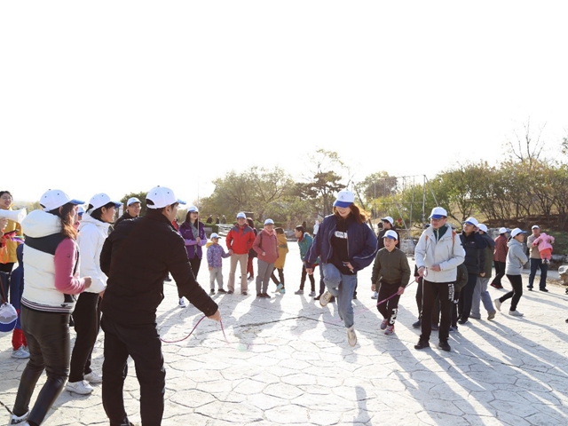登山活动中还穿插开展了分组跳大绳比赛。参赛队员全力配合、齐心协力,展开激烈角逐;围观助阵的教职工热情高涨,加油声、喝彩声此起彼伏,现场一片欢乐的气氛。