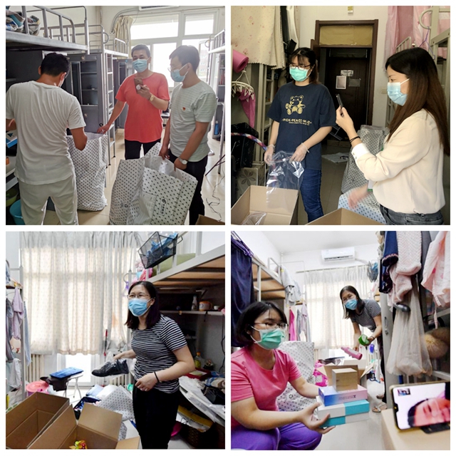 “XX同学你好,我是负责帮你打包行李的老师,我和志愿者都在你的宿舍,你看看你有哪些物品需要打包……”这是化学与化工学院本次行李打包、邮寄工作中,老师们的“经典开场白”,学生物品小到针头线脑、大到钱包首饰,为了不遗落一件物品,所有老师与学生通过一对一的视频连线确认打包情况,还用上了行车记录仪实时记录宿舍现场环境,实现“双机位”“多层级”工作,让学生放心、安心。