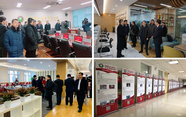 全体与会人员参观考察了研究生教学楼智慧教室、监控与录播大厅、教师服务大厅、工信部拔尖创新人才培养基地,以及在研究生教学楼一层大厅展出的近四年来获得全国学会优秀博士学位论文、全国或国际科技创新大赛奖的作品介绍展览。