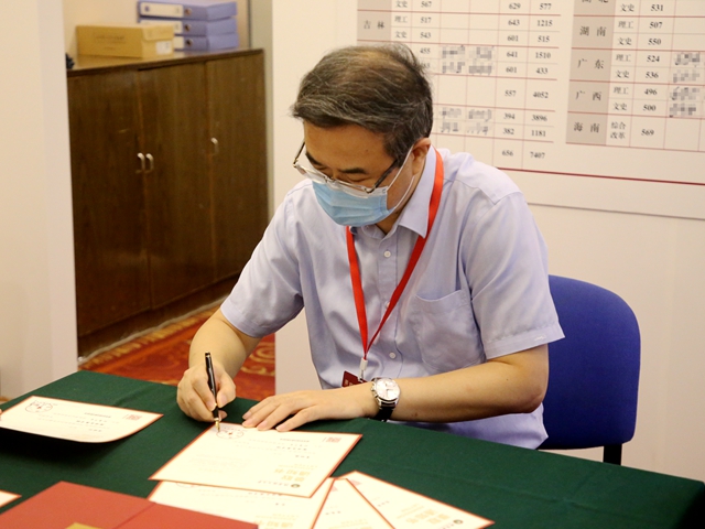 张军在招生录取现场亲自为已录取省份部分优秀学子的录取通知书签名,欢迎和激励广大胸怀壮志的优秀学子求学北理工。
